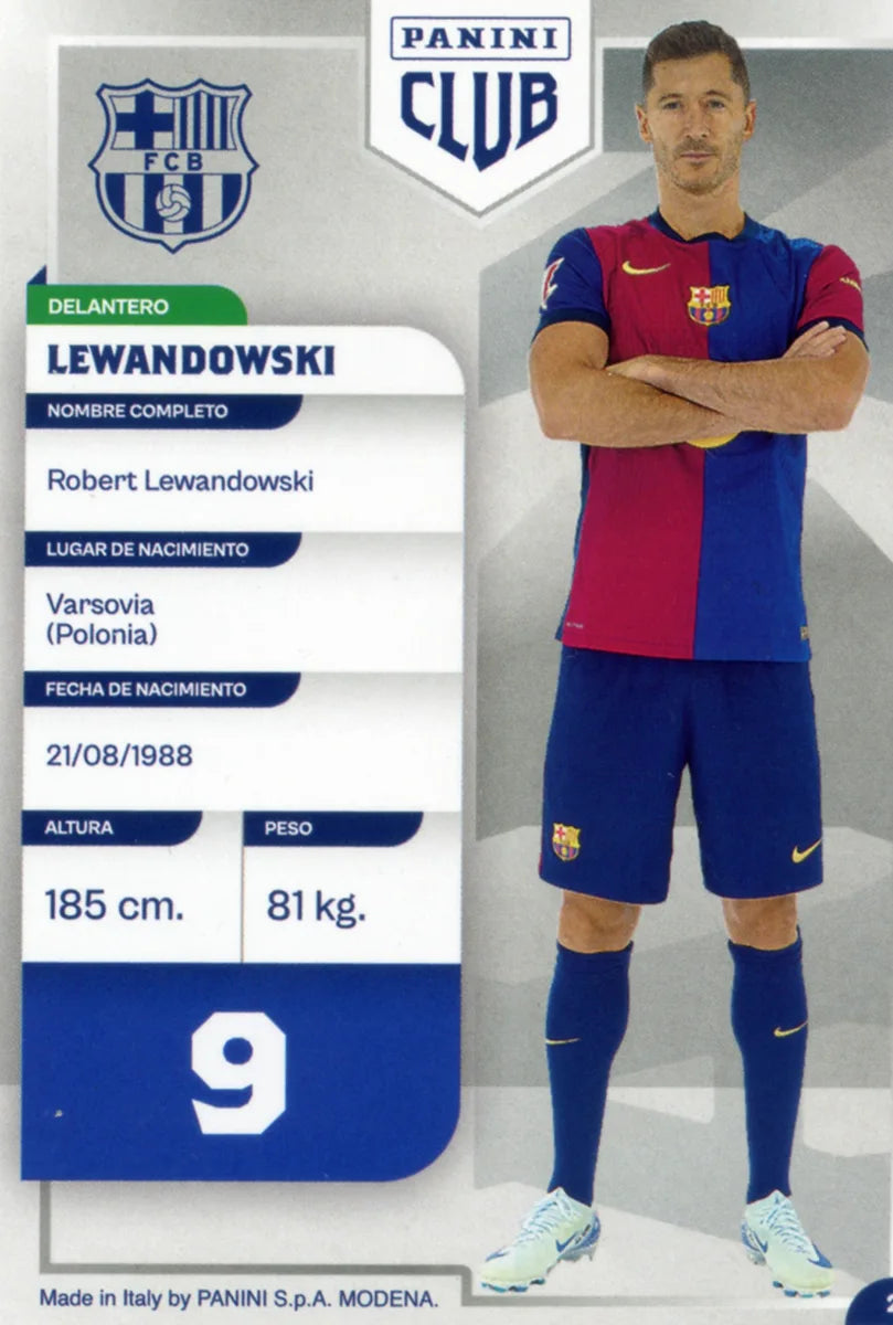Get the official Panini Club FC Barcelona 2024-2025 Trading Card of Lewandowski , FC Barcelona player.