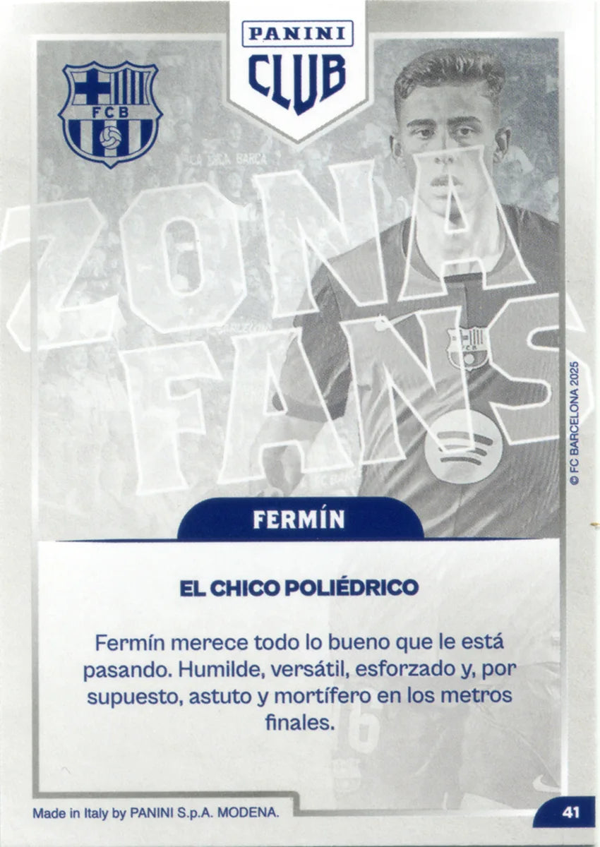 Get the official Panini Club FC Barcelona 2024-2025 Trading Card of Fermin , FC Barcelona player.
