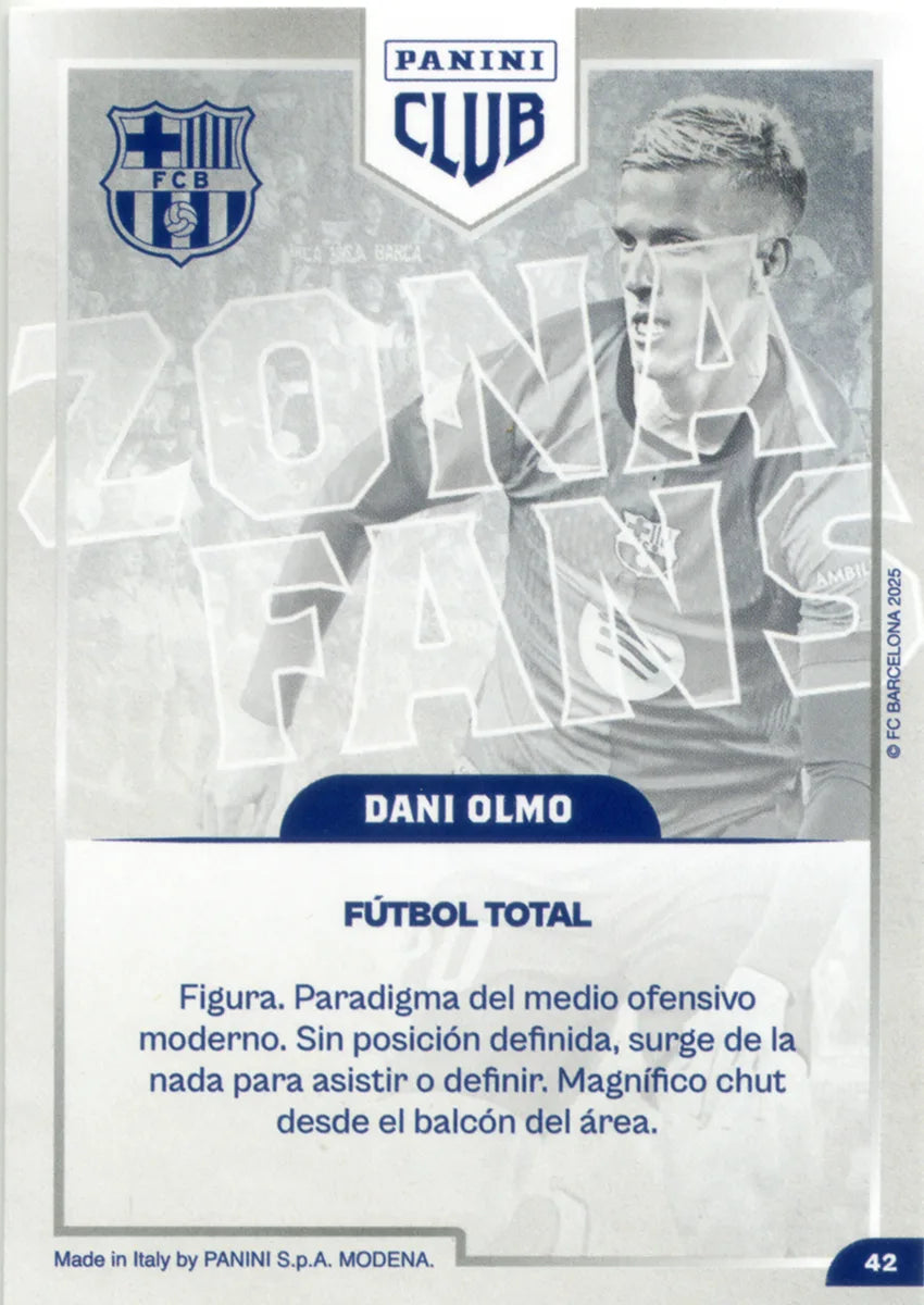 Get the official Panini Club FC Barcelona 2024-2025 Trading Card of Dani Olmo , FC Barcelona player.