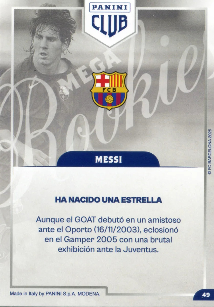 Get the official Panini Club FC Barcelona 2024-2025 Trading Card of Messi , FC Barcelona player.